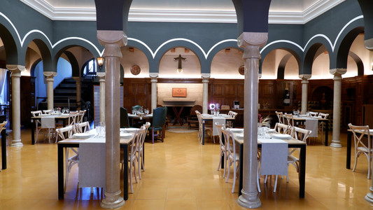 この美しい建物の前でカバを。普段見ないARS Collecta Blanc de Noirs Gran Reservaを飲んでみました。Pinot Noirにカタルーニャ州特有の品種であるTrepatとXarel·loをブレンドした白のカバ。赤ワインのブドウの品種、Pinot NoirとTrepatが入っているので少し色が黄色め。それでも赤にはならないんですね。アルムエルソ(サンドイッチなどの朝の軽食)やタパスなどもあります。美しい建物を見ながらのカバは最高!